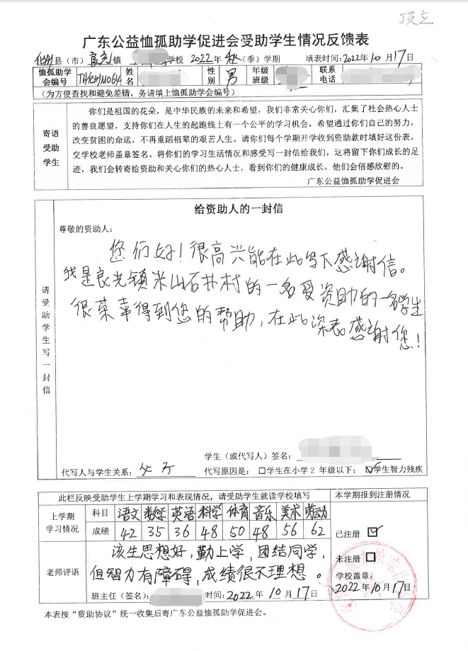 ——2022年“访贫助学化州行”慈善助学活动受助学生情况反馈
